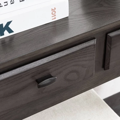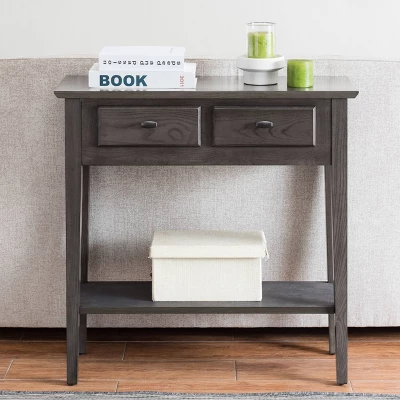 At only 10″ deep, this space saving design dares to go where no furniture has gone before. Brushed nickel, bullet pull hardware adorn the two solid wood drawer fronts. Foyers, hallways, landings are all places ready for a finishing touch with this highly versatile design in an edgy, Smoke Gray finish.