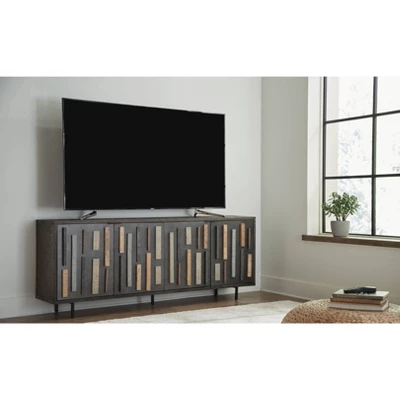 Elevate your contemporary home to a haven with an undeniably artistic attitude. This accent cabinet has a forward-thinking flair, featuring a modern mosaic created by strips of wood in varying hues against a dark brown and metallic gray finish. Fashionable and functional, the detailed doors open to reveal two shelves to suit all your storage needs. From coats and boots to purses and backpacks, accent cabinets and entryway cabinets are the perfect pieces to attractively and efficiently store your on-the-go items. Ashley offers a large variety of entryway storage cabinets, including accent cabinets with doors and accent cabinet with drawers. With so many high-quality, durable, and beautiful items, it’s easy to make a first impression with Ashley entryway furniture. Signature Design by Ashley is a registered trademark of Ashley Furniture Industries, Inc..