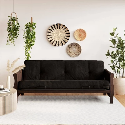 The Room & Joy Chester Wood Arm Futon Frame with 8″ Thermobonded High Density Polyester Fill Futon Microfiber Mattress is the ideal addition for any living space. Featuring solid wood arms with a walnut finish, it will surely compliment any room décor. This futon quickly and easily converts from sofa to full size bed to help you sleep or sit in ample comfort. This mattress is built to hold up to everyday use. The foldable design ensures that the mattress will retain its original shape and its attractive tufted stitching adds a pop of style to your living areas. Suitable for any room décor, this futon is just the seating accessory that you need to add to your relaxed home. It also makes a great mattress to accommodate overnight guests or for when you need to catch a quick nap after a long tiring day. Featuring an easy to clean microfiber cover and a cozy polyester fiber pad filling, you can’t go wrong with this quality GREENGUARD Gold Certified mattress. Assembled in Canada, add the versatile Room & Joy Chester Wood Arm Futon Frame with 8″ Thermobonded High Density Polyester Fill Futon Microfiber Mattress to your living room, den, guest bedroom or home office to maximize space saving efficiency.