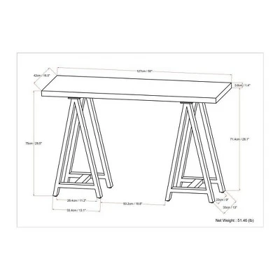 - Features a simple, wide extra thick table top surface and sturdy charcoal powder coated metal sawhorse supports