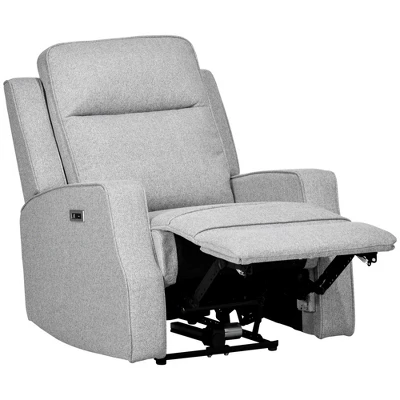 Provide an easy, comfortable spot to charge your phone with the USB port built into the side of this chair recliner. Thick sponge padding and lightweight breathable linen-touch fabric ensure long-lasting top-notch relaxation. With only 2.75″ needed between the wall and the seat back, you can keep your living room open and save floorspace. With a 150 degree reclining angle, footrest support, and an ergonomic backrest, this HOMCOM furniture assures feel-good down time.