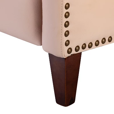 - Upholstered in foam-filled genuine Top-grain leather, it sports nailhead trim for an inviting feel.