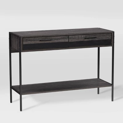 Add a splash of personality to your entryway or hallway or living room – a perfect addition to your space. Paired with an open shelf to display your favorite décor and accessories, this entryway console table with two sliding drawers keeps your out-the-door essentials tidy and organized. Duotone design paired with a sleek black legs is the ideal piece to complete your space.