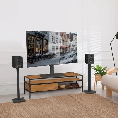- Raise the center of your TV up to 25.6” to provide room for a sound bar or other AV equipment