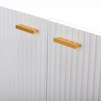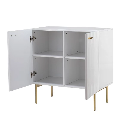 With classic colors, this cabinet looks simple and stylish, bringing comfort to your living area. It has four storage spaces inside to meet any of your storage needs. The top of the cabinet can hold anything you want to put on, such as photos, coffee or plants. This storage cabinet has a wooden frame with sturdy metal legs that ensure durability and strong weight-bearing capacity. In addition, the cabinet has metal handles to add more flair to your home. Hurry up and add it to your cart! You’ll love the final effect it has in your room. Item Size:30″Wx17″Dx32.2″H
