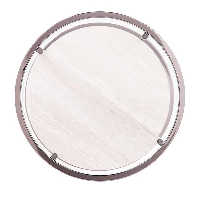 Find your better style half with the Aiden Lane Lademore Round Side Table w/ Faux Stone. Faux travertine half shelves climb up the open frame, creating unique ledges for décor or trinkets. A round glass tabletop caps off a play on negative space, while the neutral color scheme blends in with your contemporary design. Round up TV remotes and your morning coffee mug when you slide this modern side table next to your living room sofa, or put potted succulents and terrariums on display with this end table in your entryway or open concept space.