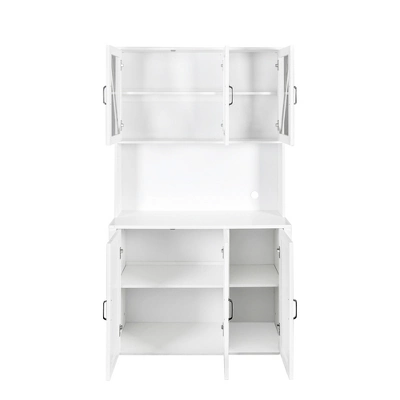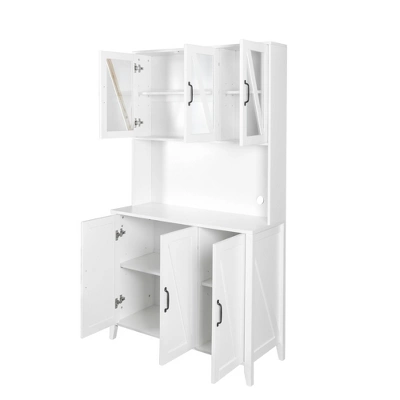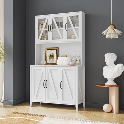 Large Freestanding Storage Cabinet With Glass Doors, Drawers And Open Shelves – ModernLuxe