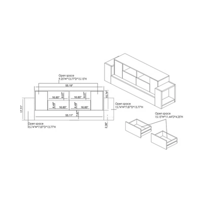 - 23.62″H x 70.86″W x 17.71″D