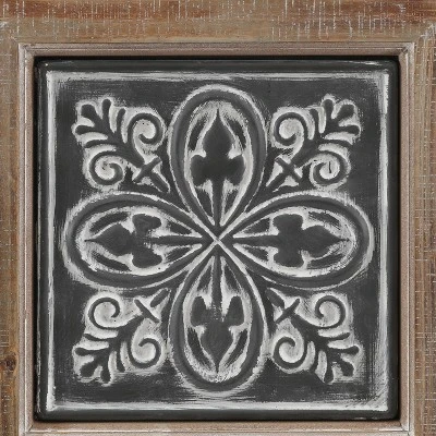 - Cabinet door has three decorative iron metal inserts