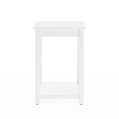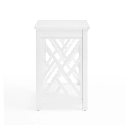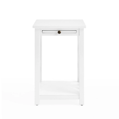 The Middlebury Wood End Table with Tray Shelf in White from Alaterre Furniture is a great addition to your living space. The open detailing on each side is airy and offers a unique look for your décor. The pull-out tray is perfect for adding extra surface to the table without taking up more floor space. Place your cup of coffee on while curled up with a book and then push back in to return the table to its original size.