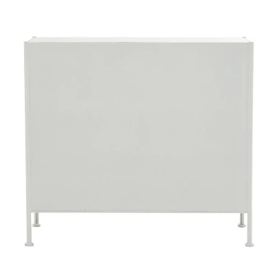 A practical yet stylish upgrade that instantly elevate the look of your room. Maintain a clutter free zone and stay organize with this chic cabinet. Introduce a new element into your living room or bedroom with this white rectangular cabinet with partition that can add storage and the right dose of chic to your interior. This accent furniture features interior space with 31.50”L x 12.50”W x 11.50”H measurements. This item ships in 1 carton. Suitable for indoor use only. Maximum weight limit is 100 lbs. This is a single cabinet. Metal cabinet features a single shelf. Modern Farmhouse style.