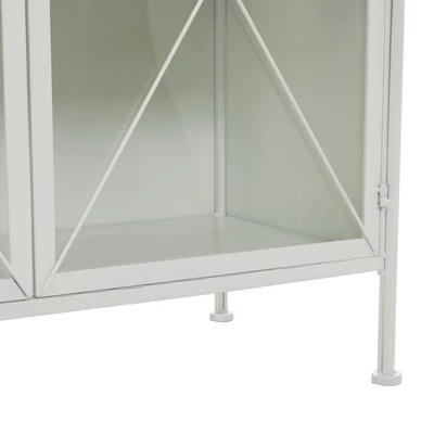 - 2-door modern farmhouse decorative cabinet is crafted of robust and quality iron and glass materials