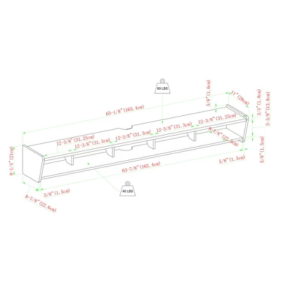 | Dimensions (Overall) | 8.25 Inches (H) x 65.13 Inches (W) x 11 Inches (D) |
