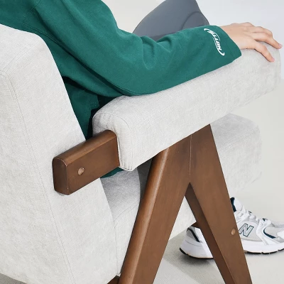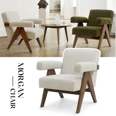 Kim Kardashian makes V-leg Chandigarh Chair popular, and we bring more pop of color. The upside down “V” shape design is the core spirit of this collection. With a relaxed, casual flair inspired by Scandi design, this modern two-tone chair contrasts its rich exposed-wood legs with the nubbly charm of its upholstered seat, back and arms.Thanks to the brilliant material duet, SOLID WOOD leg in warm walnut tone with contrast of the DECENT FABRIC makes this chair timeless classic but modern. The seat has GENEROUS PADDING, along with a slightly PITCHED back support for comfortable reading or snap, and the arm is fully upholstered as well. Never compromises on details, the edge of each piece of wood is polished, you could feel warm, round, safe edge when you touch it.This beautiful fabric is SOFT, THICK and DURABLE (375g). The RICH, SATURATED HUES gives your space an elevated touch. You will never know what we are going through to make this OLIVE GREEN (or you can call it moss green), fabric mill sampled the color swatch at least 5 times, and finally, we get our OLIVE GREEN! The most satisfying OLIVE GREEN!We have dining chair, counter stool and bench in same collection, you could complete your home look with the rest pieces, that will make your house look an expensive custom home without spending a ton of money.