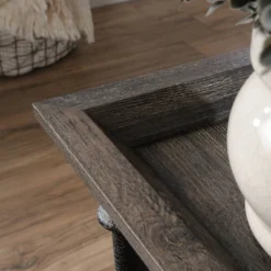 A simple addition can change the look of an entire room. Add sleek, industrial-inspired design to any room in your home with this metal and wood console table from the North Avenue® collection. This console table features a spacious top surface that provides you with the perfect amount of space to highlight your important items. By offering a design that does not draw attention away from what you choose to house on it, your items are the star on this narrow console table. This metal console table also makes a convenient spot to set your wallet and keys or charge your phone or tablet. This modern-day metal sofa table is finished on all sides for versatile placement throughout your home – in your living room, hallway, foyer, or entryway. It looks great no matter where it stands. It is constructed with a durable black metal frame and the top is finished in a warm toned Sindoori Mango® that complements your current Sauder pieces or adds a lively touch to the furniture that you already have. Don’t fall into the trap of choosing a boring console table. Treat yourself, your items, and your home to the North Avenue® sofa table.