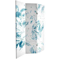 Update the look of your living space or home office with the Pure Leaves Room Divider from Oriental Furniture. This white room divider is covered with a bold blue leaf print for an added pop of color. Place behind your overstuffed armchair to create a cozy reading spot, or set up as a backdrop for your large potted plants or decorative sculpture.
