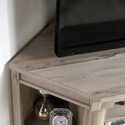 Make the most out of compact spaces without having to sacrifice on style with this corner entertainment stand from the Palladia collection. This corner TV stand accommodates up to a 60″ TV, making it the ideal spot to cozy up around for a movie marathon with your friends. This media credenza features two large adjustable shelves that have the ability to move to different heights to create flexible storage for items of all shapes and sizes. It also includes two adjustable corner display shelves. The adjustable shelves are ideal for storing and displaying a variety of items like video equipment, decorative plants, books and photos of your family and friends. Need more? This entertainment credenza also features two storage drawers that open and close on smooth metal runners. The enclosed back panel has cord access so you can keep wires neat and out of sight. Finished in Split Oak, this stunning corner credenza is the small space solution for you!