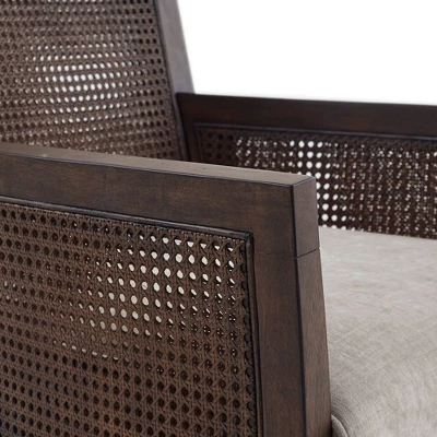 Relax in the comfort and simple style of the Madison Park Paulie Cane Armchair. The unique cane back and sides feature an espresso wood finish, for a charming farmhouse look. The loose seat is upholstered in a rich fabric and uses high-density foam filling, for long-lasting comfort and exceptional support. Add this accent chair to your living room or home office for a chic update to your space. Assembly required, tools included.If the item details above aren’t accurate or complete, we want to know about it. Report incorrect product info.