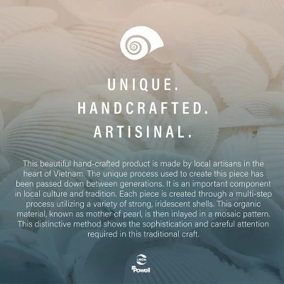 - Capiz shell mosaic in a multicolor mother of pearl inlay finish on top