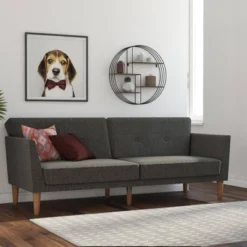 Perry Sectional Futon With Storage Convertible Sleeper Camel Faux Leather – Novogratz