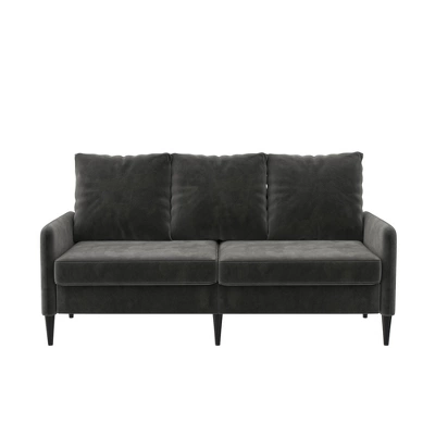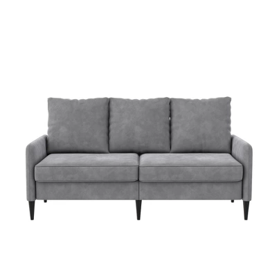 - Small space approved for your living room, thanks to its svelte wood-built frame and slim armrests. Fits any tight corner