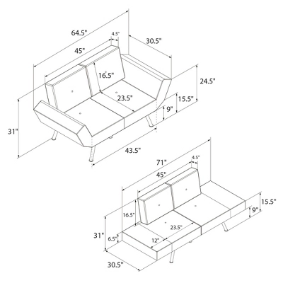 RealRooms Euro Upholstered Tufted Loveseat Futon With Storage Pockets