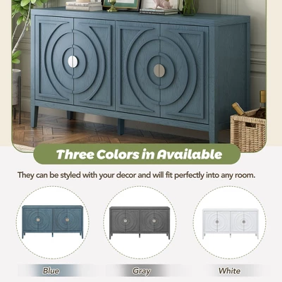 - [Retro Design] This retro sideboard has four doors with rounded lines on the doors to create a three-dimensional look. You can put it in the kitchen, entryway, or living room, the country-style cabinet adds a warm atmosphere to your home.