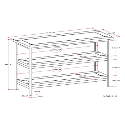 - DIMENSIONS: 18″ D x 60″ W x 26″ H