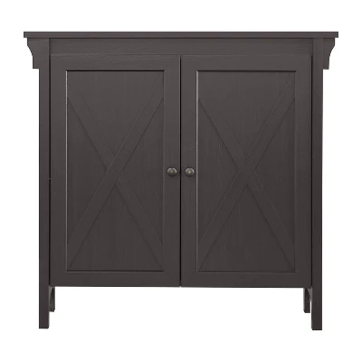 Create the perfect spot for stashing everything from office supplies to seasonal clothing with this modern farmhouse two-door storage cabinet. The ideal size for a multi-functional space, the cabinet is built with farmhouse character evident in its small details and barn-inspired X-cross accents on two doors. A wide top provides plenty display potential perfect for framed photos, a table lamp, or even a beautiful sculptural piece. This cabinet is offered in espresso and cherry wood finishes, each setting a stylish tone for your space.Saint Birch’s mission is to help everyone create a better home, where one can find affordable style and comfort. We strive to ensure every customer’s experience with our products is warm, worry-free, and comfortable.