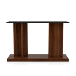A tremendous glass pedestal sofa table will add dazzle to your living area. Its sleek rectangular-style tabletop adds to its modern appearance, while the alluring base brings the aesthetics to a new level. Its pedestal base features an overlapping design in a wood and white finish, sitting upon a rectangular white base for support and durability.