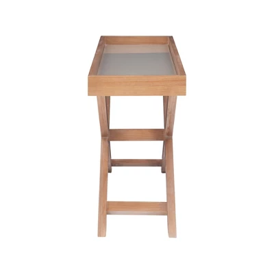 This X base console is perfect for making a subtle statement in your dining room, living room or entryway. A glass top is set within a solid Brazilian pine frame to create an intriguing dimension for the display of flowers, knickknacks, books, and other small decorations. The natural lacquer finish offers extra protection while also highlighting the knots and grains of the wood for a more rustic appearance. Minimal assembly is required.