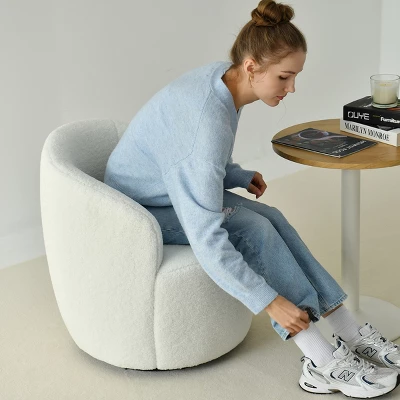 Set Of 2 Fannie 25.60” Wide Small Size Boucle Upholstered 360° Swivel Barrel Chair-The Pop Maison