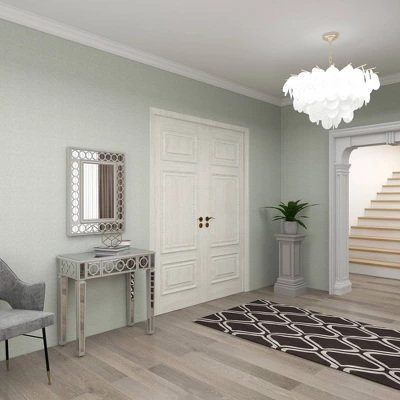 - •This set of furniture features rectangular wall mirror, rectangular console table with drawer, round pull knob, and trellis pattern overlay