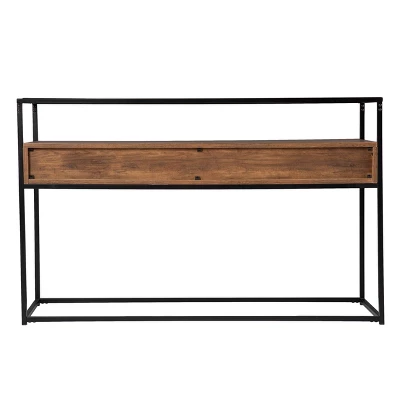 Take display storage to the next level with the Aiden Lane Slehidi Glass-Top Console Table with Storage. A spacious glass tabletop easily holds framed photos and décor pieces, while convenient drawers and an open shelf organize your reading collection. Slide this narrow table behind your living room sofa to collect remotes and spare pillows, or station in your entryway to hold accessories and pet gear. Beautifully blend style and function when you bring home this glass-top console table.