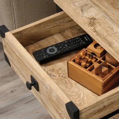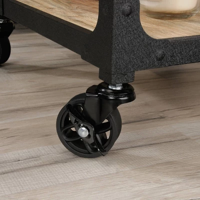 No home his complete without the perfect side table. Give your living room a touch of rustic style and design when you add this side table from the Steel River® collection. This metal and wood side table offers a spacious top surface that provides you with the room you need for all your couch side items like an accent lamp, framed photos, coasters, and a refreshing ice-cold beverage. The storage drawer opens and closes on smooth metal runners for easy access storage of items like crossword puzzles, your reading glasses and the TV remote. The lower open shelf provides you with additional storage space for items like books and organizing bins. This end table also include casters for mobility so it can move where you need it. Its detailed with a textured, powder coated metal frame and corner accents that are sure to catch the eye of guests. Finished on all sides in Milled Mesquite, this industrial style side table will give your home a vintage look.