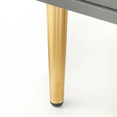 - Gray finish accented with gold-tone legs and handles