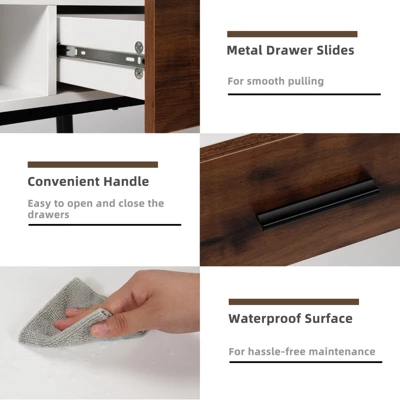 This console table is designed to make your home even more organized. The sturdy MDF board and powder-coated metal legs allow for great endurance and stability. The table tops can hold up to 88lbs, while drawers and open shelf can hold up to 18lbs. The metal slide on the side of the drawer makes the drawer more smooth to pull out, convenient handle makes the drawer easier to open and close, waterproof surface makes the drawer longer to use and easy to clean. Of course, you can also place books, plants, lamps and ornaments on this console table, which will make your home look new whether you place it in the living room, bedroom, or hallway.