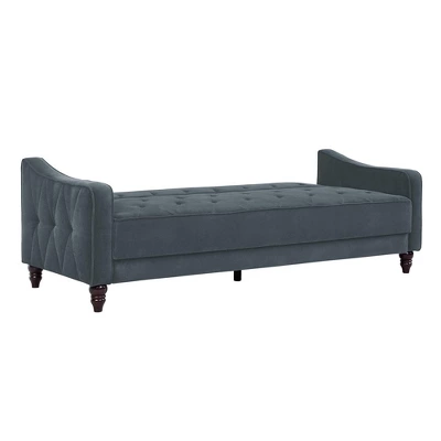 Classic and tailored, the Novogratz Vintage Sofa Sleeper has a timeless appeal that will add pizzazz to any living room. Upholstered in rich velour fabric with diamond tufting, this transitional-style sofa is accentuated by Victorian legs. Extending its charm, the slim sloped-arms are tufted for a complete look. The comfortable seat has three easy-to-convert positions including sitting, lounging and sleeping. Adapted for a more contemporary, vintage aesthetic, the Novogratz Vintage Sofa Sleeper will definitely take center stage in any living space.