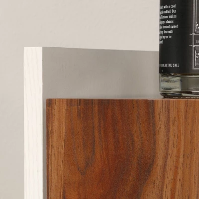 Add a touch of coastal-inspired design and beauty to any room in your home with this accent cabinet from the Vista Key collection. This storage cabinet features two doors with glass inserts that create a beautiful look that is sure to stand out in your home. Behind these doors is a storage area that includes an adjustable, safety tempered glass shelf that can be moved to different heights to create flexible storage for items of all shapes and sizes. Store and display anything from stacks of books and work binders to decorative seashells and picture frames. This accent cabinet also features a hidden drawer behind the doors that functions as a shadow box underneath the amber-tinted glass display top. This storage cabinet is accented with metal pulls and base framing in a brushed nickel finish. It’s also finished on all sides for versatile placement throughout your home. Finished in Pearl Oak with Blaze Acacia accents, this one-of-a-kind accent piece is everything your home needs and more.