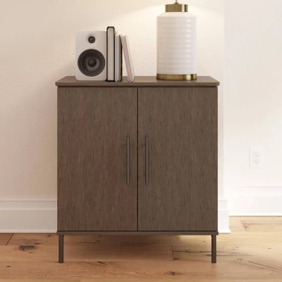Our CosmoLiving by Cosmopolitan Vivinne Storage Cabinet is the space-saving piece you deserve. Trendy gray wood veneer combines seamlessly with black metal accents to give this cabinet a classic design perfect for any fashionista. Keep all of your ~things~ organized on the shelving behind the 2 doors. The Vivinne is here to come thru for your adult home needs. *adds to cart*