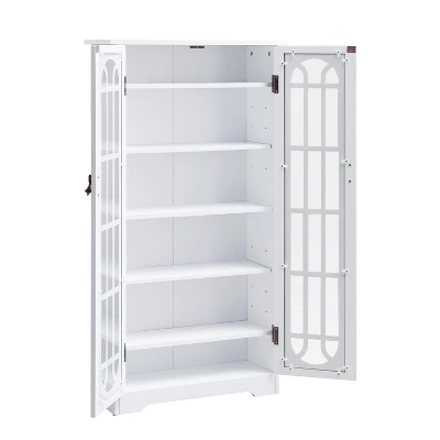 - Features 4 fixed and 2 adjustable shelves