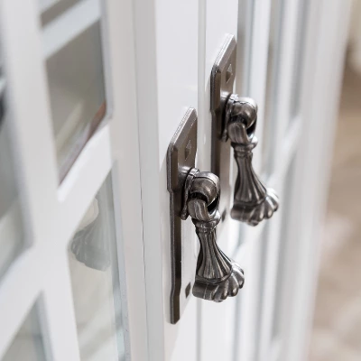 Put your favorite items on display with the Aiden Lane Wilkes Display Cabinet. Six spacious shelves provide a variety of storage opportunities, while windowpane cabinet doors keep décor, souvenirs, or knickknacks safe and secure. Tuck this versatile storage cabinet into your dining room to store fine china and glassware, or place in your living room to keep movies and music within reach. Store everyday items in style with this double-door curio cabinet.