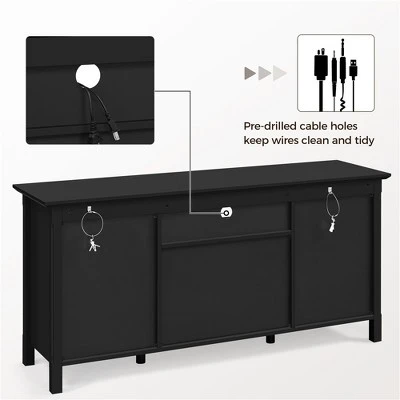 - 【Design for 60″-65″ TVs】With top measuring 58″ L × 16″ W/ 147 cm L × 40 cm W and bearing up to 220 lb/ 100 lb, this TV storage cabinet best suits TVs from 60″ to 65″. If your TV is a little bit larger than 65″ but below the weight capacity, this TV console table is still your ideal pick