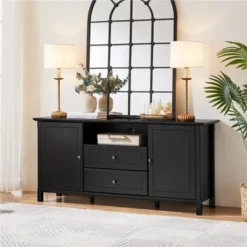 - 【Generous Storage】The 5 compartments and 2 drawers of this 58″/ 147 cm long media console break its application boundary. Beyond housing TV, electronics in the living room, its spacious top and storage area make this media console table perfect in other rooms to house lamps, soundboxes, fans, or gather articles