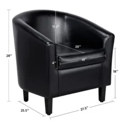 Yaheetech Faux Leather Accent Arm Chair Barrel Chair With Ottoman For Living Room Black